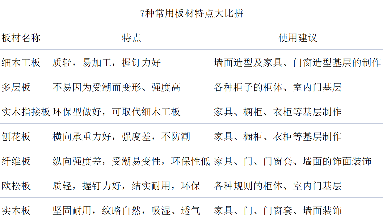 7種常用板材特點大比拼